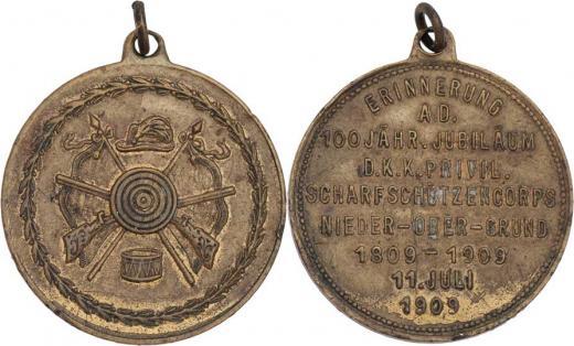 Nieder Ober Grund (Dolní a Horní Žleb u Děčína) 1909- 100 let spolku 11.7., Nesign., mosaz 28 mm s původním raženým ouškem, Indra.0, hr., pěkná patina