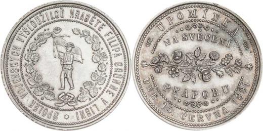 Praha Libeň 1891 - spolek hraběte Filipa Grünne - svěcení praporu, Nesign., bílý bronz 32mm, 18.852g, Indra.str.42(cín), nep.hr.ražbou