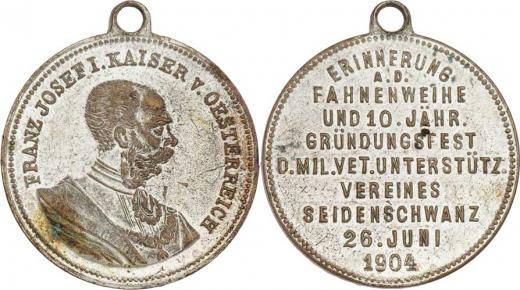 Seidenschwanz (Vrkoslavice u Jablonce nad N.) 1904 - 10 let trvání spolku 26.6., Nesign., stř.mosaz 28 mm s pův. raženým ouškem, Indra.str.51, patina, dr.hr.