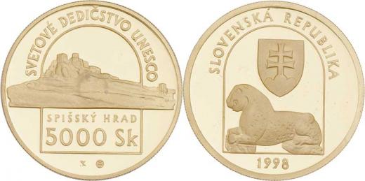 5000 Koruna 1998 - Spišský hrad - světové dědictví UNESCO, KM.46 (Au900, 9.50g, pouze 6.000ks), kapsle, etue, certifikát, přebal