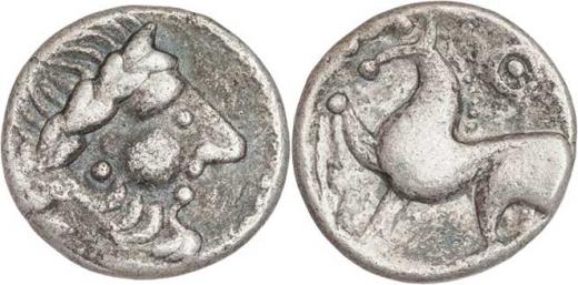 AR Drachma "Kugelwange" - hlava zprava s kulovitou tváří / kůň zleva, nahoře kroužek s tečkou, Lanz.507, Göbl.16/188A-1, 2.029g, pěkná patina