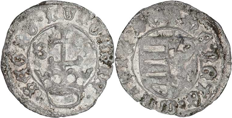 Denár b.l. (1464), zn."B-S", Husz.708, 0.522g, nep.nedor., nep.exc., pěkná patina R!