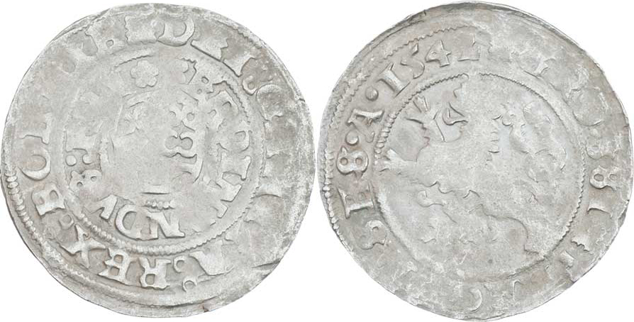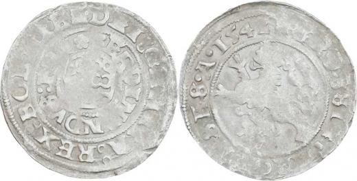Pražský groš 1542, K.Hora-Hubáček, Chv.10/a.K, královská koruna, podobný jako J.4, MKČ.70, 2.329g, nep.vady materiálu, nep.exc., nep.nedor.