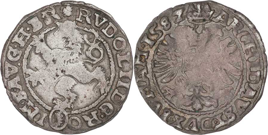 Bílý groš 1582, K.Hora-Šatný, J.13a, MKČ.376, 1.869g, nep.nedor., nep.dvojráz, pěkná patina