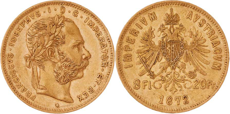 8 Zlatník 1872 (pouze 5.185 ks), 6.427g, nep.hr., nep.rysky, pěkná patina RR!