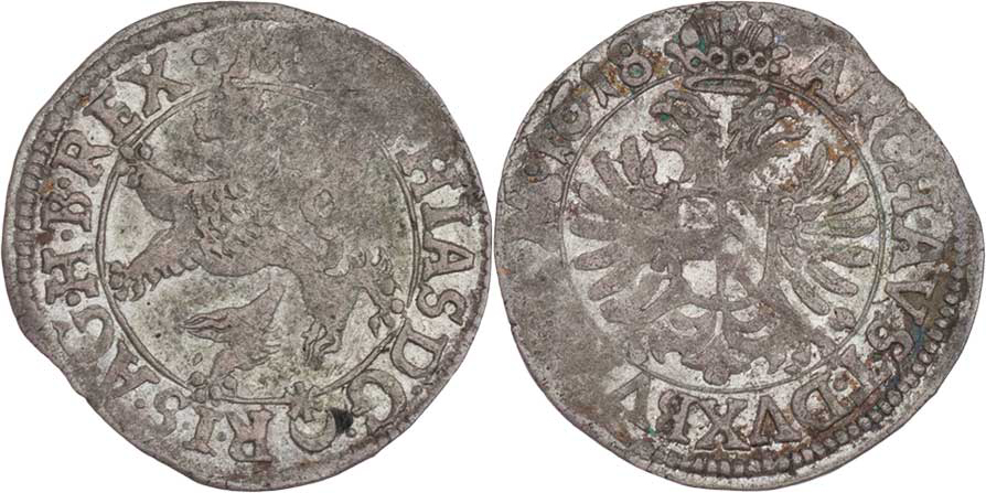 Bílý groš 1618, Praha-Hübmer, J.2b, MKČ.514, 1.434g, nedor., pěkná patina, starý sáček