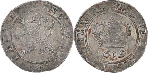 24 Krejcar 1619, K.Hora-Hölzl, J.6b, MKČ.574 - chybný opis "IN.DIO....", 7.754g, nedor., pěkná patina RR!