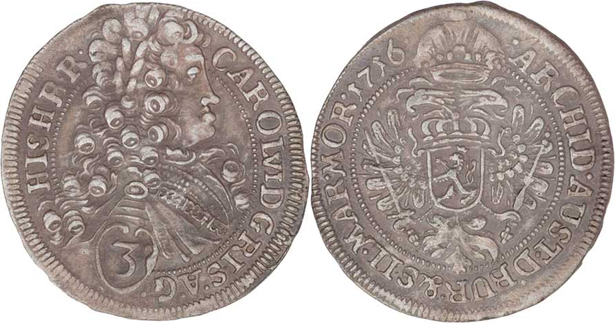 3 Krejcar 1716, Praha-Scharff, J.8c, MKČ.1828, 1.705g, nep.exc., pěkná patina, Chaurův sáček