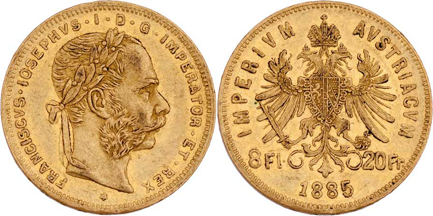 8 Zlatník 1885, 6.438g, nep.hr., nep.rysky, pěkná patina, téměř