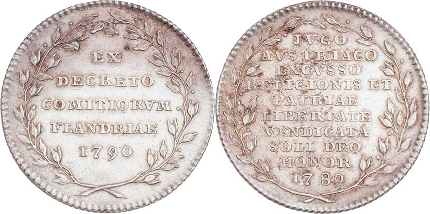 Flandry - AR jeton na vyhlášení samostatnosti 1790 - desetiřádkový nápis ve věnci / pětiřádkový nápis, Nesign., 33mm, 11.883g, M.2196, H.3178, krásná patina