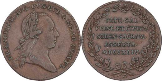 AE větší jeton na holdov. ve Flandrech 1794 - poprsí zprava, opis / pětiřádkový nápis ve věnci, Nesign., 27mm, 7.593g, Nov.M.5b, LG.XIV.1104, nep.hr., patina
