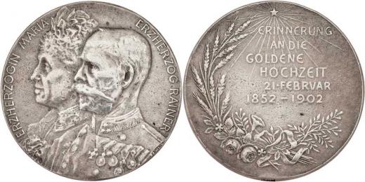 Pavlik - AR medailka na zlatou svatbu 21.2.1902 - dvojportrét zleva, opis / zářící hvězda a 6-řádkový nápis ve věnci, Sign., Punc., 25mm, 5.691g, dr.rysky