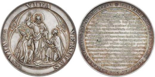 Radnitzky - AR medaile na setkání s papežem 1856 - postavy Krista, papeže a císaře, opis / 16-řádk.nápis a opis, Sign., 62mm, 78.836g, H.3771, nep.rysky R!