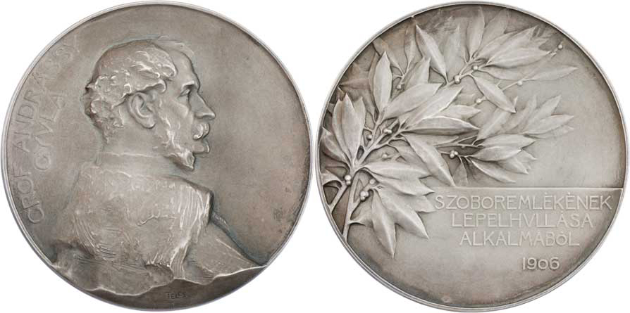 Telcs - AR pamětní medaile 1906 - poprsí zprava, dva opisy / vavřínová ratolest a 4-řádkový nápis, Sign., Nepunc., patinov.Ag, 69mm, 118.418g, pův.etue