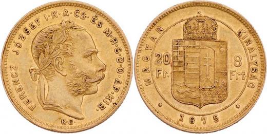 8 Zlatník 1875 KB, 6.445g, nep.hr., nep.rysky, pěkná patina, téměř