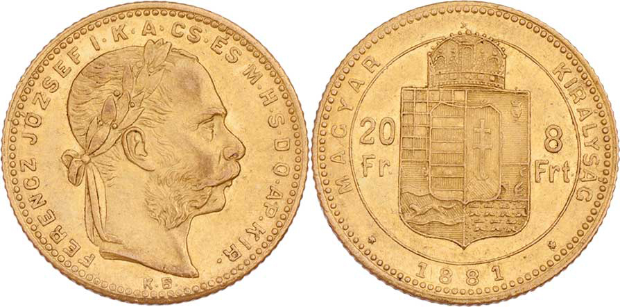 8 Zlatník 1881 KB, 6.444g, nep.hr., nep.rysky, pěkná patina, téměř