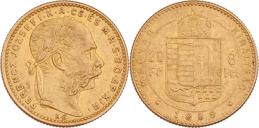 8 Zlatník 1888 KB, 6.437g, nep.hr., nep.rysky, pěkná patina, téměř