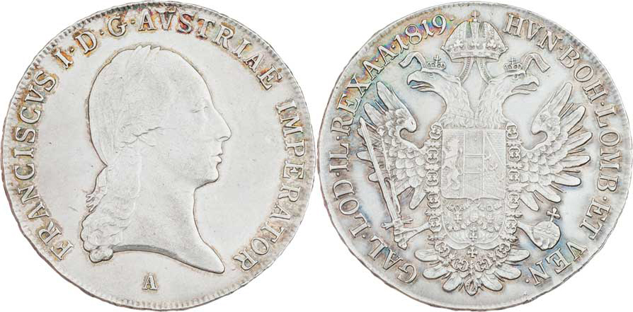Tolar konvenční 1819 A, 28.038g, nep.hr., nep.rysky, mírně just., pěkná patina R!