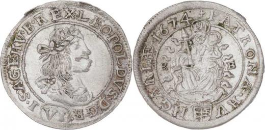 VI Krejcar 1674 KB, Nech.1195, Husz.1450, 3.165g, téměř