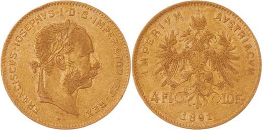 4 Zlatník 1891 (pouze 11.000 ks), 3.229g, dr.hr., nep.rysky, pěkná patina RR!