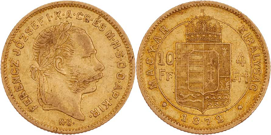 4 Zlatník 1872 KB (pouze 53.000 ks), 3.182g, nep.hr., nep.rysky, pěkná patina R!