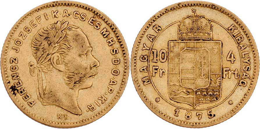 4 Zlatník 1875 KB (pouze 11.000 ks), 3.189g, nep.hr., nep.rysky, skvrnky, patina R!