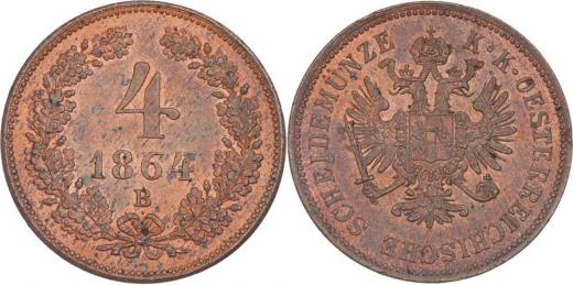4 Krejcar 1864 B, 13.445g, nep.hr., nep.rysky, krásná patina