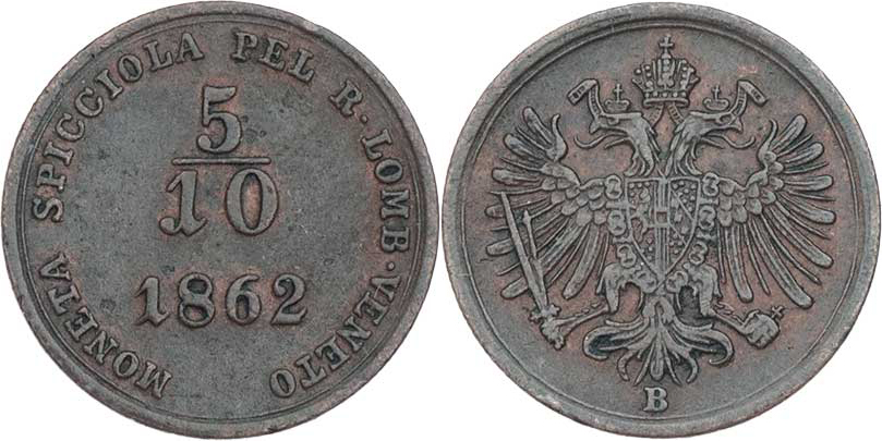 5/10 Soldo 1862 B, 1.625g, dr.hr., patina R!