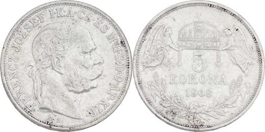 5 Koruna 1908 KB, 23.858g, dr.hr., dr.rysky, patina
