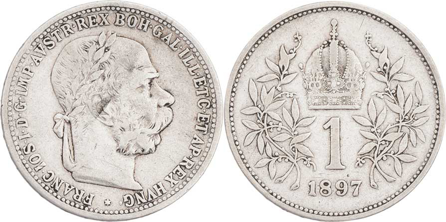 Koruna 1897, 4.932g, nep.hr., nep.rysky, pěkná patina R!