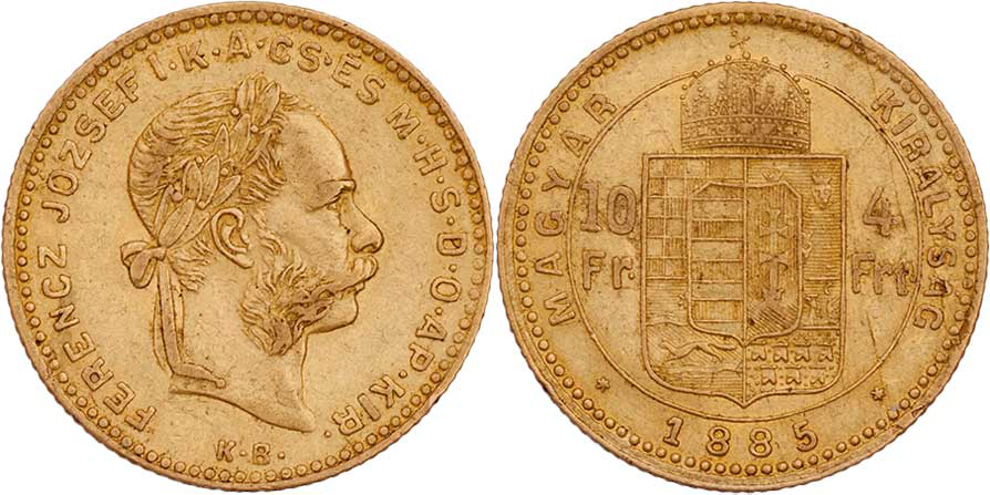 4 Zlatník 1885 KB (pouze 64.000 ks), 3.201g, nep.hr., nep.rysky, pěkná patina R!