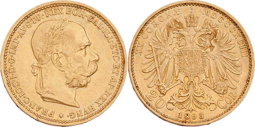 20 Koruna 1893, 6.757g, nep.hr., nep.rysky