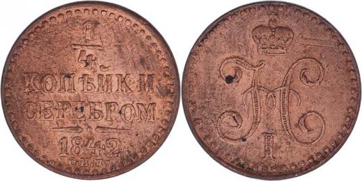 1/4 Kopějka 1842 SPM, Petrohrad, Cr.142.2 (Cu), 2.635g, nep.hr., dr.škr., nep.rysky
