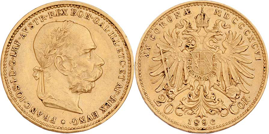 20 Koruna 1896, 6.773g, nep.hr., nep.rysky, pěkná patina
