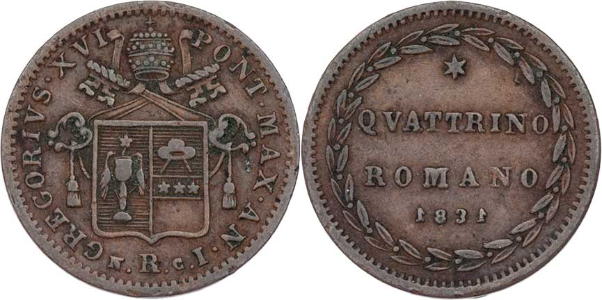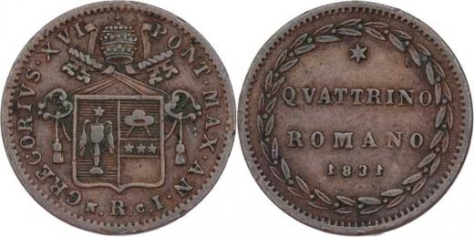 Quattrino 1831 R - I.rok pontifikátu, Řím, KM.1312, Berm.3280, 2.362g, nep.hr., pěkná patina