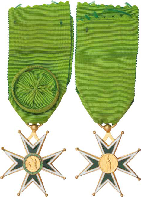 Náprsní kříž na stuze s kokardou (důstojník), zlacený bronz 40x40 mm, na kruhu nečitelný punc výrobce R!