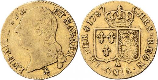 Luisdor 1787 A, Paříž, KM.591.1, 7.578g, drobná stopa po oušku, mírně just., dr.rysky, patina