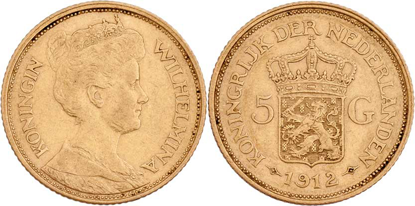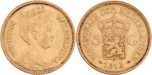 5 Gulden 1912, KM.151 (Au900), 3.355g, nep.hr., vl.rysky, pěkná patina