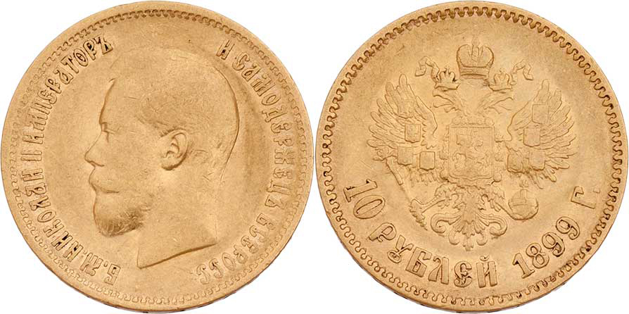 10 Rubl 1899 AG, Y.64 (Au900), 8.525g, dr.hr., dr.rysky, patina