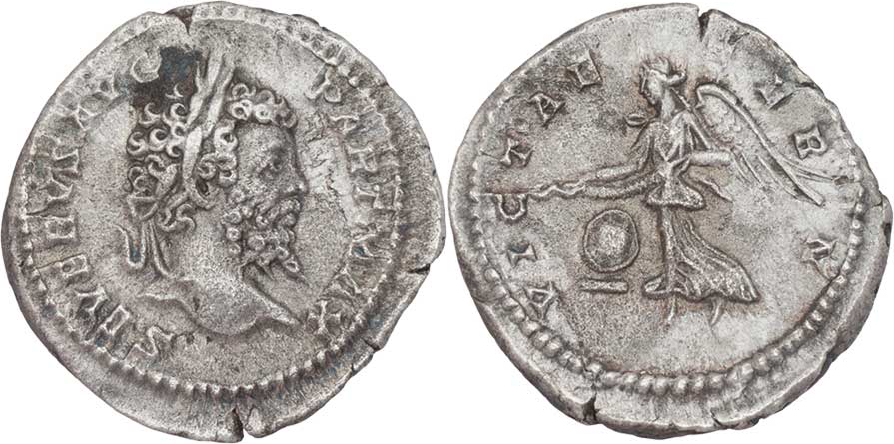 AR Denár, Rv:"VICT.AETERN.", Victoria zleva, štít, S.1688, RIC.170 - minc. Řím - ražba z let 200 - 201, nep.exc., skvrna, patina