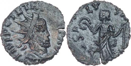 AE Antoninianus, Rv:"SALVS.AVG.", stojící Salus, podobný jako S.3080, RIC.121 - minc. Vienna v Galii - blíže nedatován, nep.napr.okraj, nedor., patina