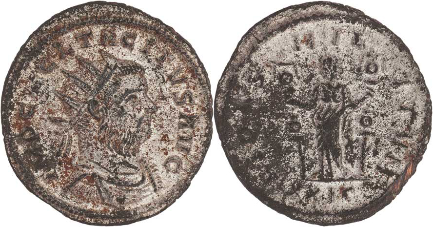 AE Antoninianus, Rv:"FIDES.MILITVM.", stojící Fides, RIC.87, podobný jako S.3206 - mincovna Řím - 6.dílna - blíže nedatován, původní postříbření, pěkná patina