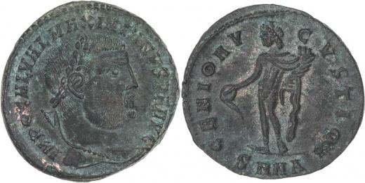 AE Follis, Rv:"GENIO.AVGVSTI.CMH.", RIC.54a(66a) - S.3618 - Nicomedea - 1.dílna - ražba z let 308 - 311, nep.exc., pěkná patina