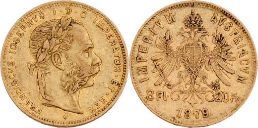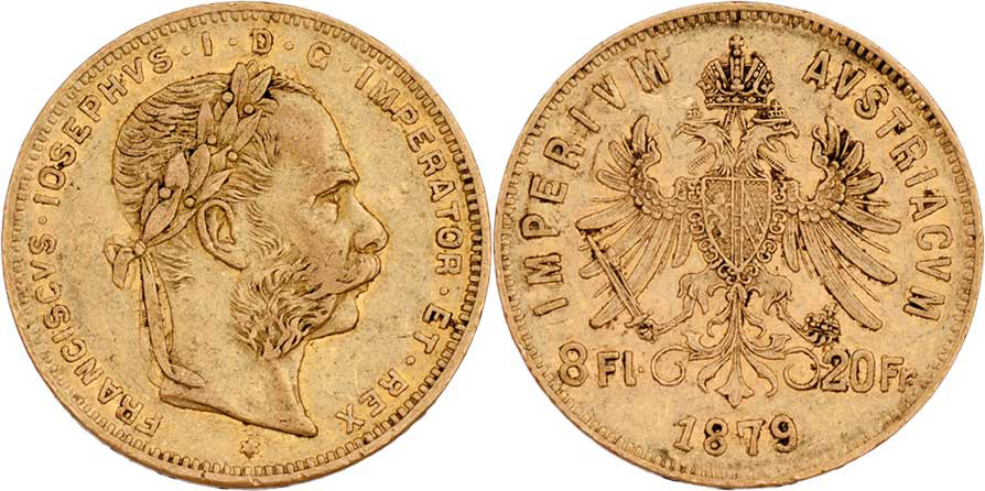 8 Zlatník 1879 (pouze 43.000 ks), 6.435g, nep.hr., nep.rysky, pěkná patina R!