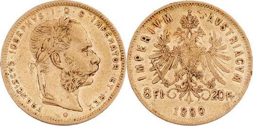 8 Zlatník 1880 (pouze 62.000 ks), 6.427g, nep.hr., nep.rysky, pěkná patina