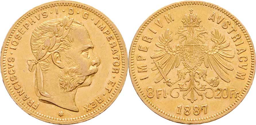 8 Zlatník 1887, 6.442g, nep.hr., nep.rysky, pěkná patina, téměř
