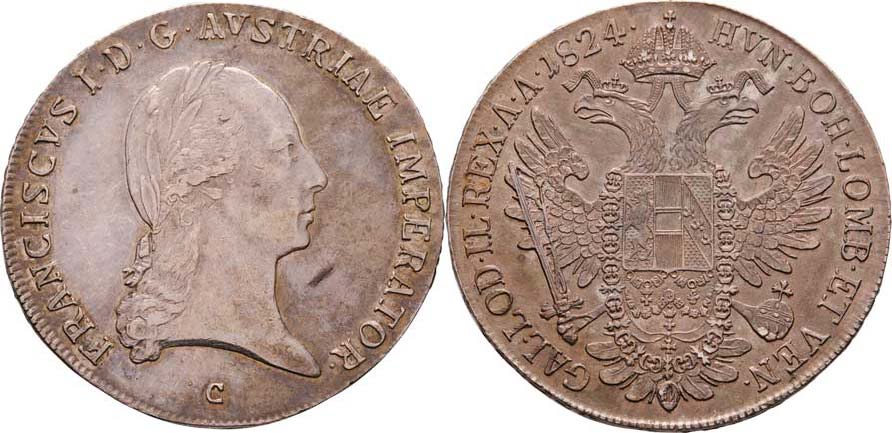 Tolar konvenční 1824 C, Praha, 28.068g, nep.just., nep.rysky, pěkná patina