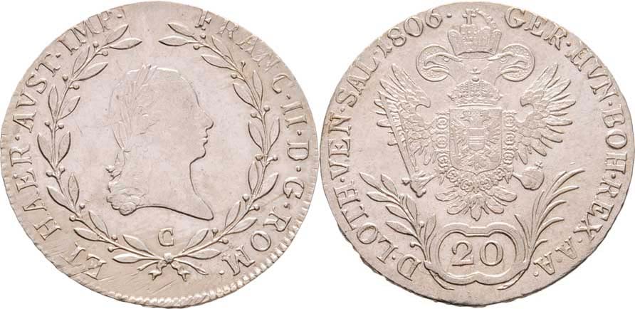 20 Krejcar 1806 C - s říšskou korunou a tituly císaře římského a rakouského, 6.680g, mírně just., nep.hr., nep.rysky R!