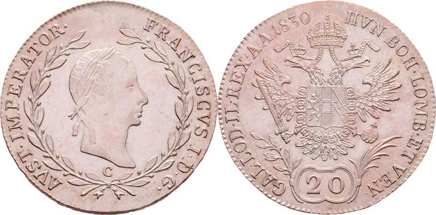 20 Krejcar 1830 C, 6.694g, pěkná patina