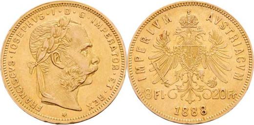 8 Zlatník 1888, 6.433g, nep.hr., nep.rysky, pěkná patina